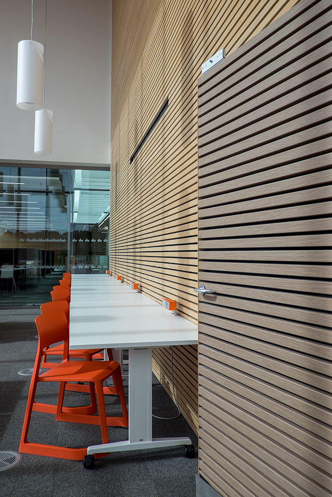 Travaillant en étroite collaboration avec l’équipe de projet de l’université et MCW Architects, thedesignconcept est parvenue à agencer avec succès un ensemble de meubles divers de part en part du bâtiment, dont :