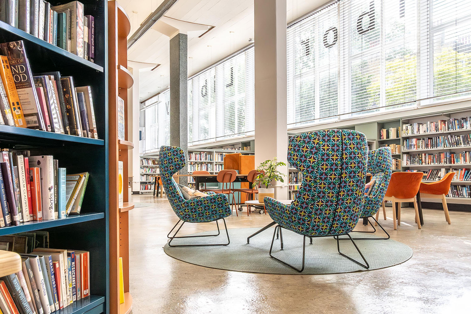 La bibliothèque Holborn, située à Londres, a rouvert ses portes après une rénovation majeure qui préserve son charme moderniste des années 50 tout en intégrant un design moderne et accueillant. Construite à l’origine entre 1959 et 1960, elle constituait à l’époque un exemple innovant de l’architecture d’après-guerre. Cette rénovation met en valeur son héritage historique tout en répondant aux besoins contemporains grâce à des espaces modulables, des zones d’étude optimisées, une section jeunesse agrandie, un nouveau coin lounge et un espace dédié à la création. La durabilité a été un élément clé, une grande partie du mobilier d’origine ayant été réutilisée. L’aménagement est désormais totalement accessible et pensé pour offrir un cadre accueillant, propice à l’apprentissage, à la créativité et aux échanges.