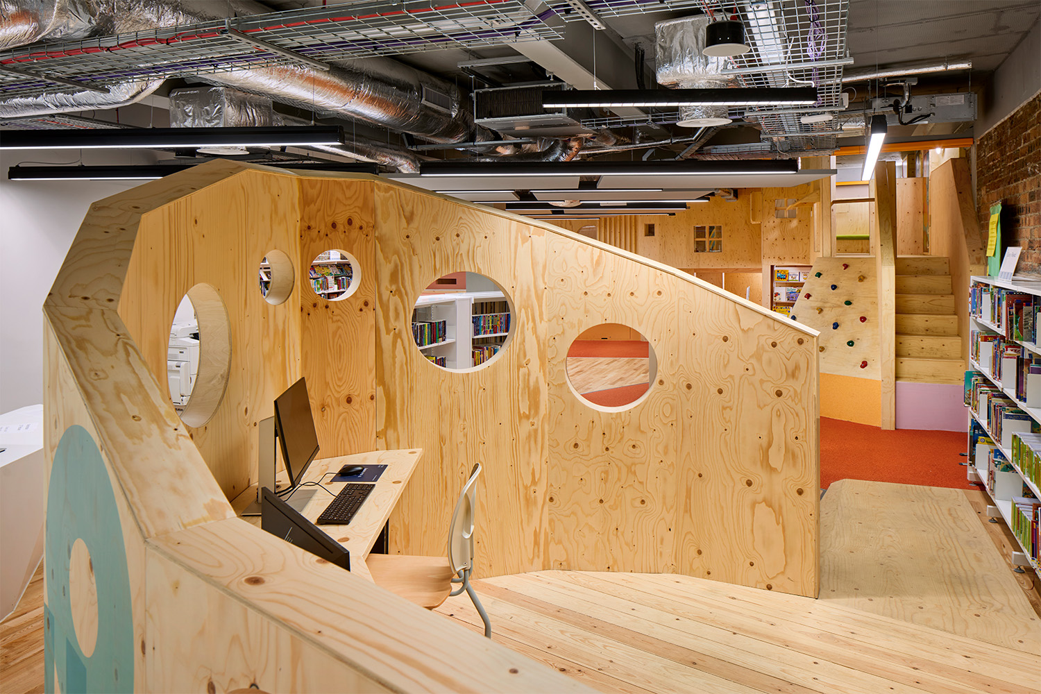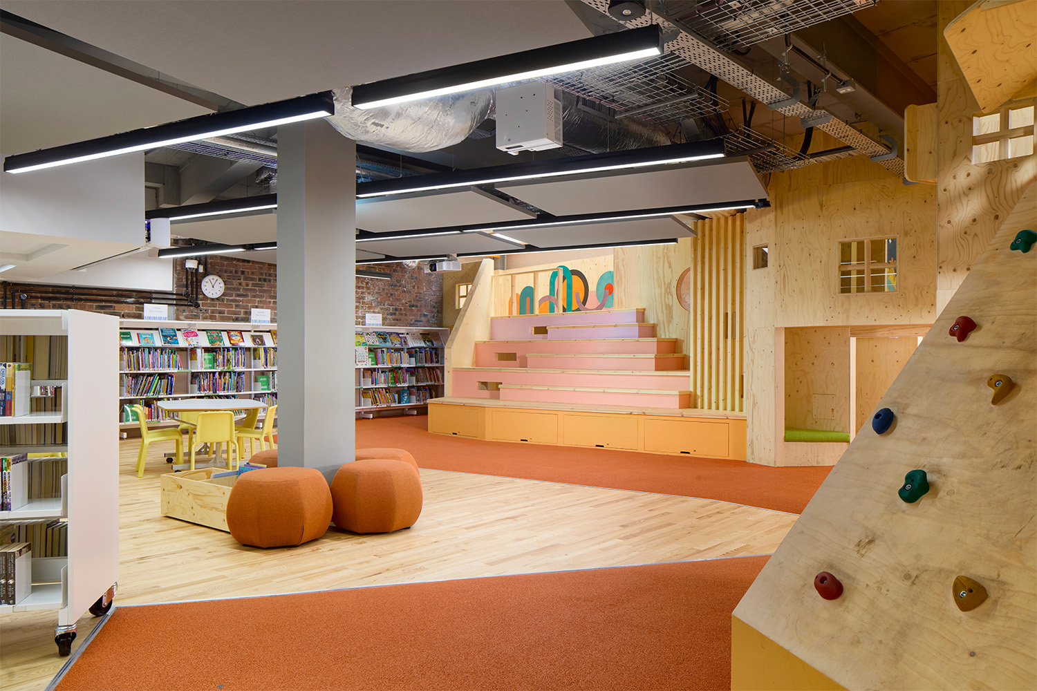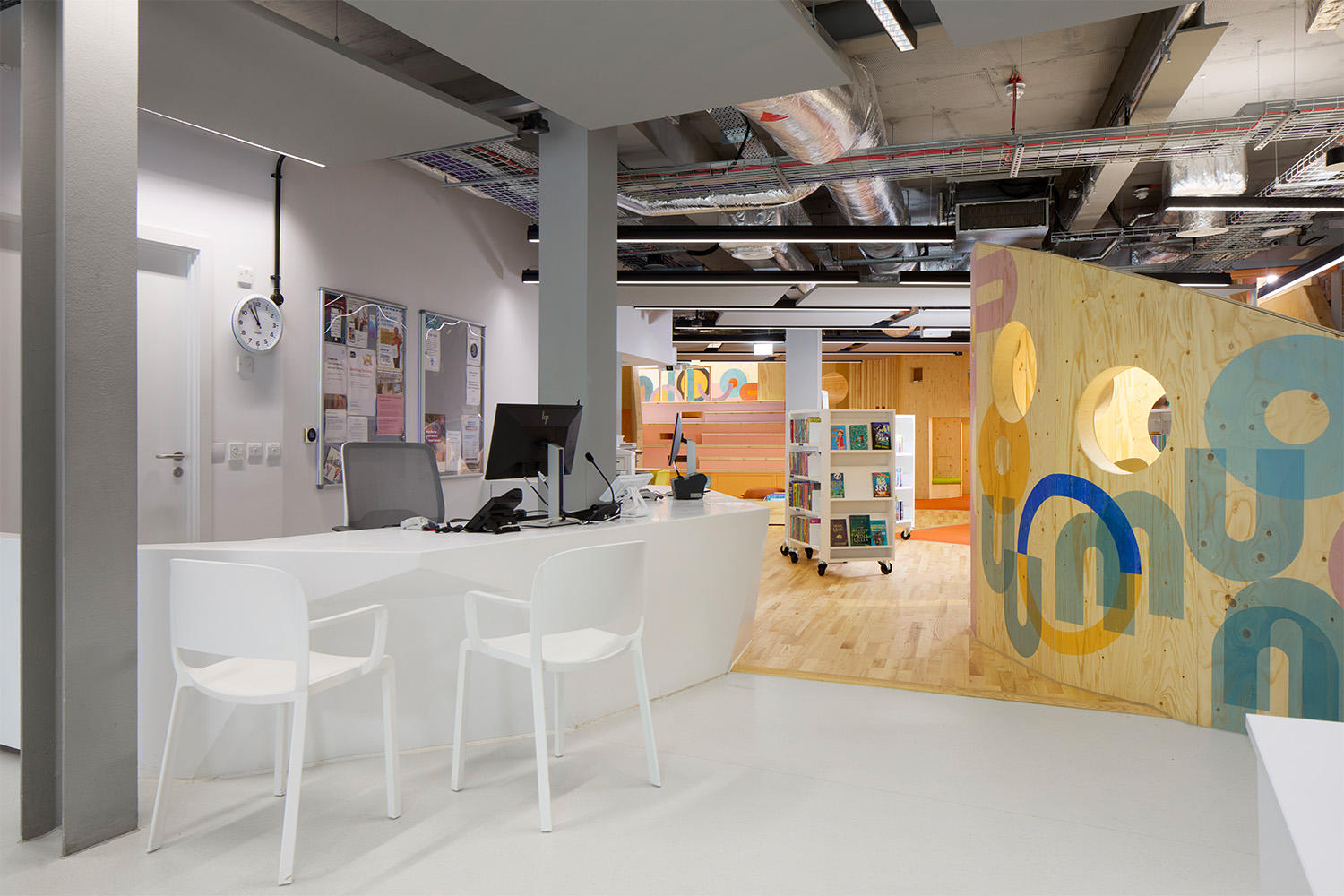 Un hall d'entrée du public, accessible depuis la rue principale mène à des coins secrets et inattendus où les enfants peuvent jouer et découvrir au sein de la bibliothèque jeunesse, l'espace "heure du conte" et la structure de jeu créés par l'artiste écossaise Claire Barclay. Au premier étage, un vaste espace abrite la collection principale de la bibliothèque et donne accès à diverses salles destinées à accueillir des réunions et des spectacles. Au deuxième étage, l’espace de lecture offre un environnement calme et conduit à la galerie et à la salle d'étude. De plus, un espace extérieur est aménagé en jardin surélevé.