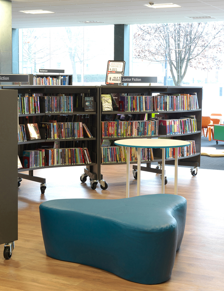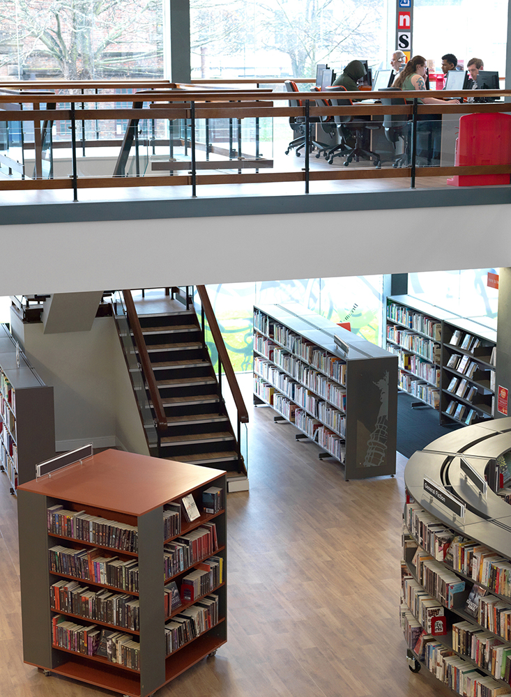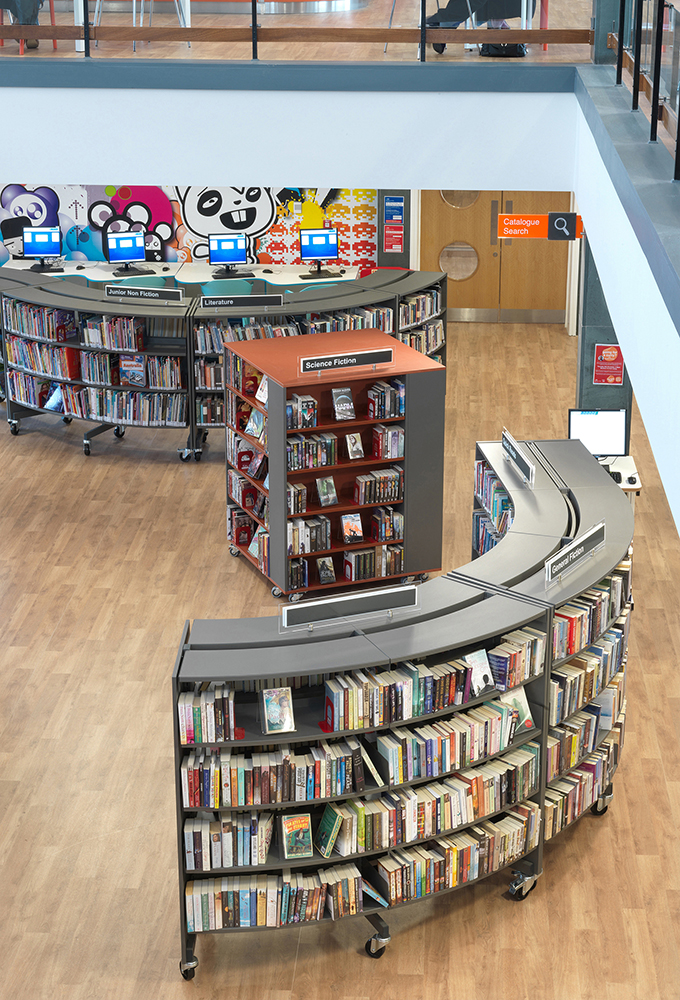 La bibliothèque est dotée de la toute dernière technologie, avec notamment un ensemble d’infrastructures spécialisées pour les aveugles et les personnes malvoyantes. Le bâtiment comporte également une zone dédiée à l’histoire locale et à l’histoire de la famille où l’aménagement de rayonnages Gothia avec des panneaux latéraux de bois perforés crée un environnement approprié et traditionnel tout en respectant le sentiment de modernité que dégage l’ensemble du bâtiment.