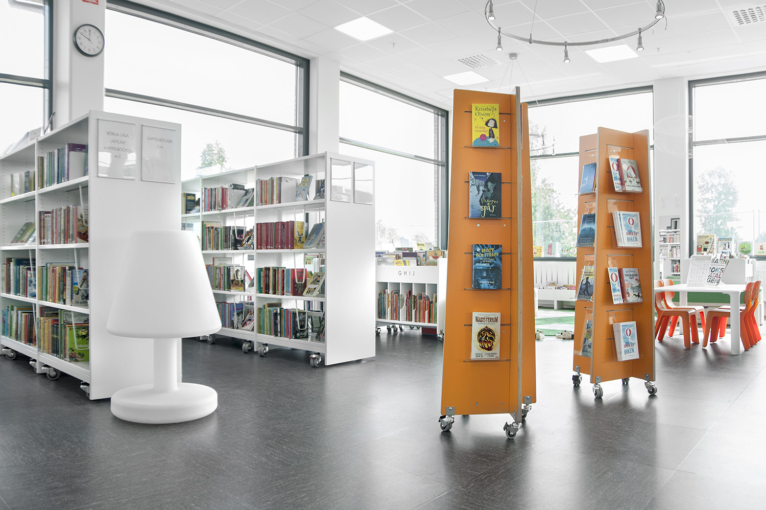La bibliothèque de Bara d’une superficie de 400 m2 a intégré de nouveaux locaux et ouvert ses portes à l’automne 2015. Dès le départ, elle a été conçue en tant que bibliothèque en libre-service, ce qui s’est révélé être un avantage considérable lors des processus de planification et de construction. Avec le personnel de bibliothèque, Lammhults Biblioteksdesign a élaboré des solutions intérieures qui ont été prises en considération par la ville au moment de la prise de décision.