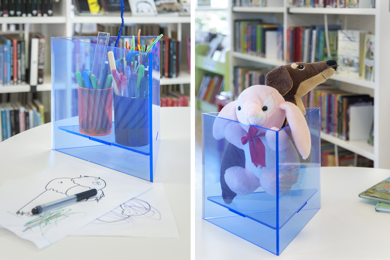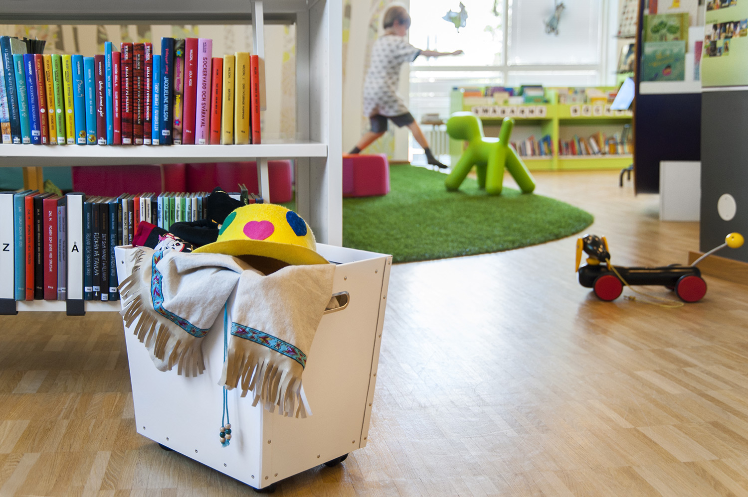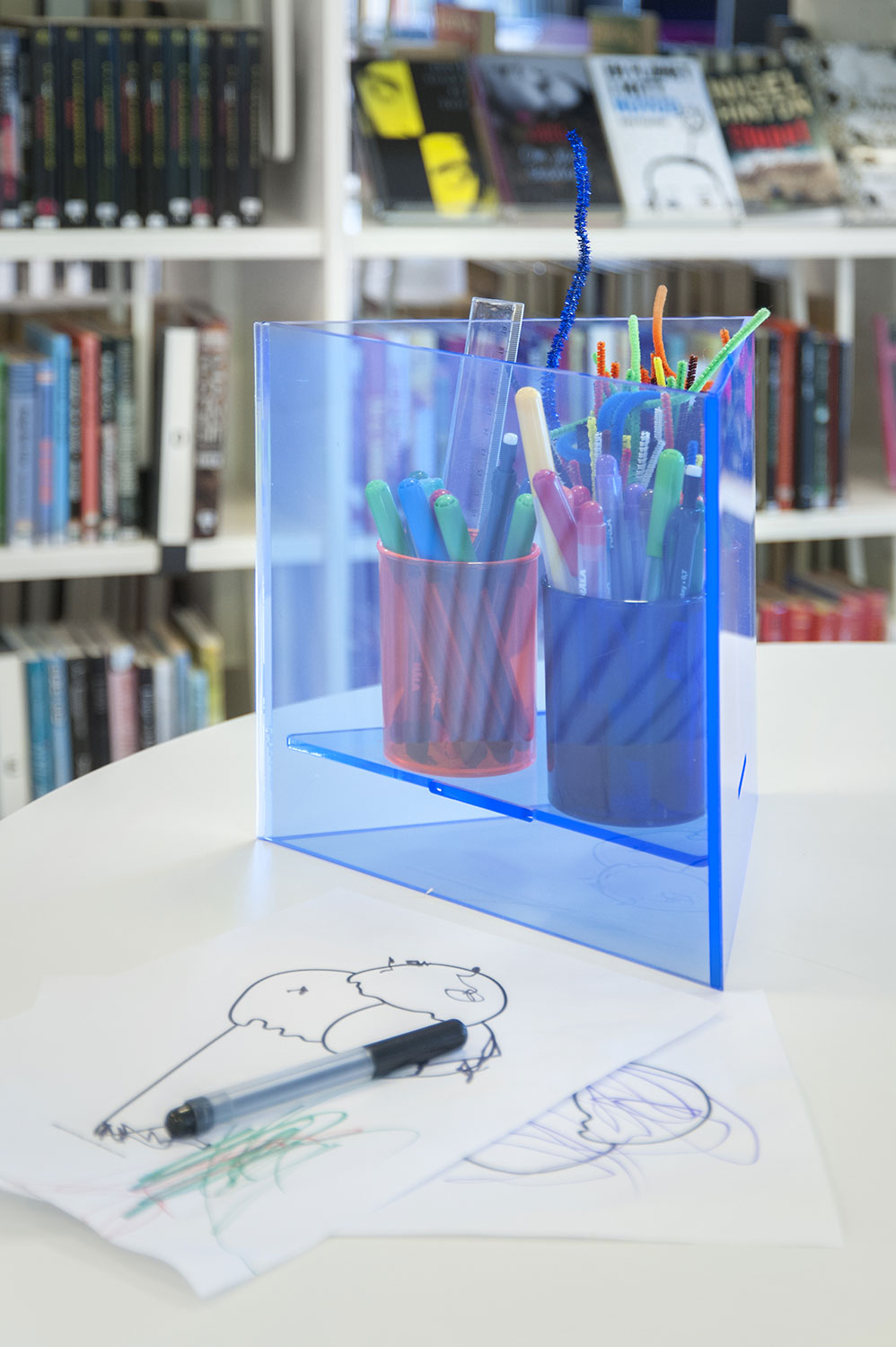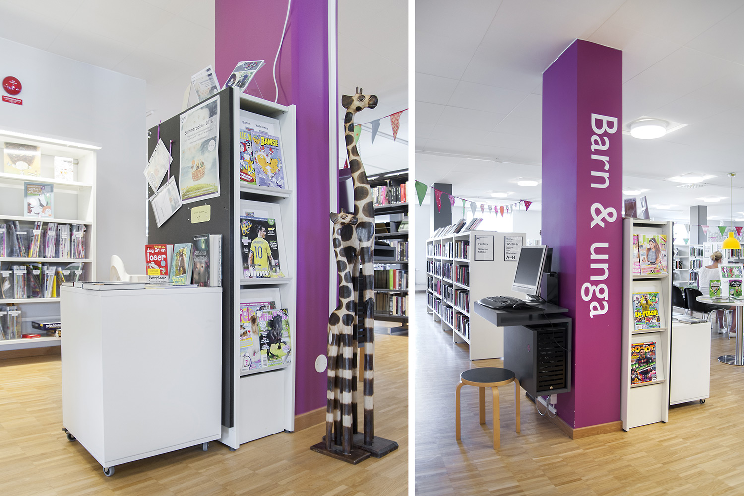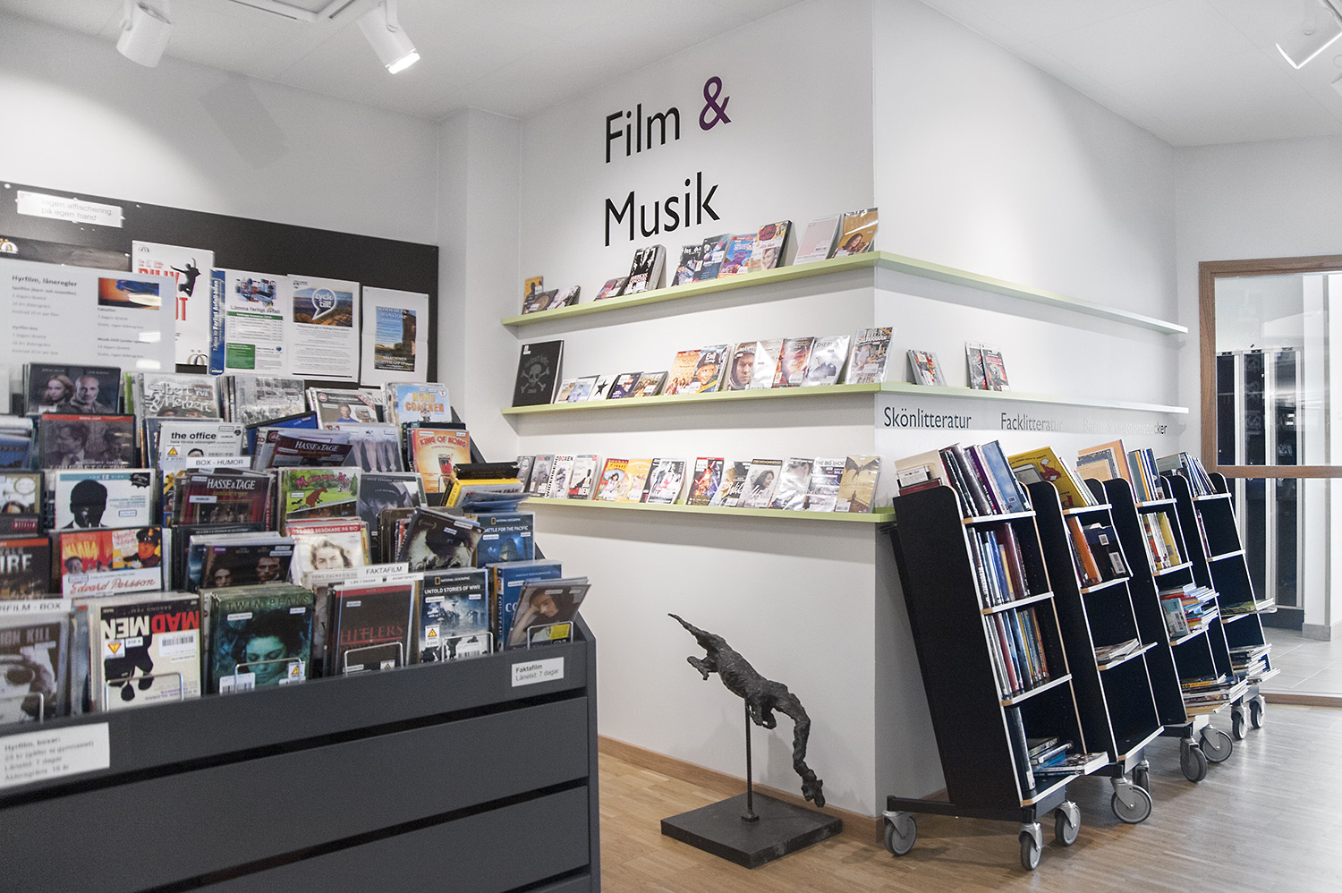 Cette bibliothèque est à la fois une bibliothèque publique et une bibliothèque scolaire intégrée à la Sunds High School de la municipalité de Vellinge. Son caractère spacieux et l’opportunité de pouvoir à la fois y étudier et se détendre en font un excellent environnement de travail pour les étudiants et les citoyens.