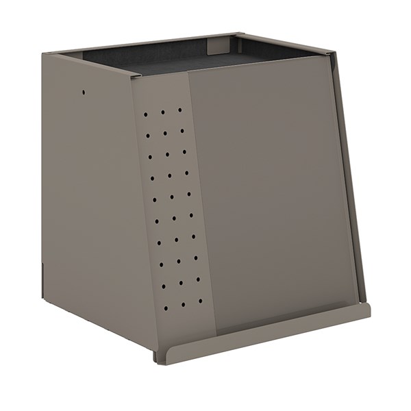 Boîte pratique pour étagère d’une profondeur maximale de 250 mm. Montre les périodiques avec la couverture tournée vers le visiteur.