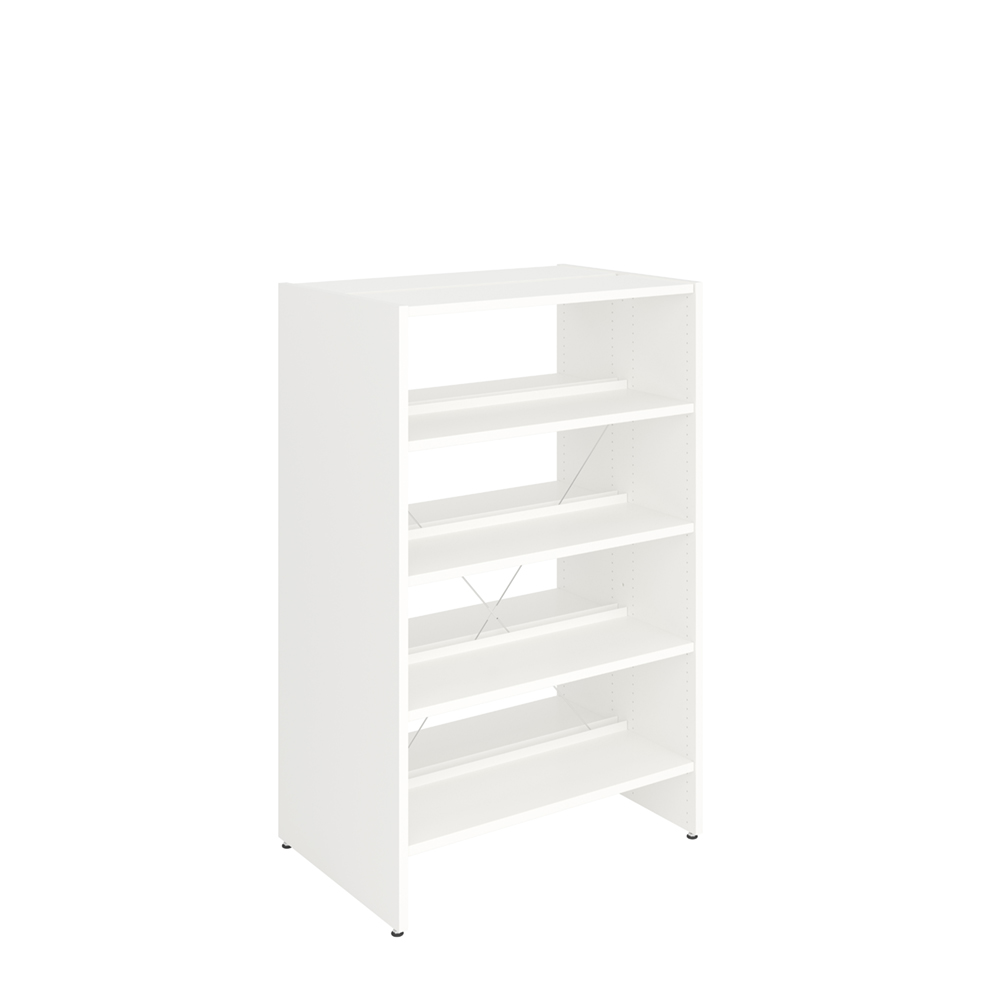 Choisissez parmi trois hauteurs standard comprenant des étagères réglables avec butée arrière pour une flexibilité maximale. Les étagères du haut, du bas et du milieu sont fixes et les autres étagères peuvent être repositionnées très facilement.