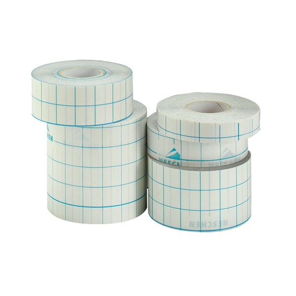 Ruban plastique autocollant, transparent, brillant; souple. Adhérence immédiate ; non repositionnable.