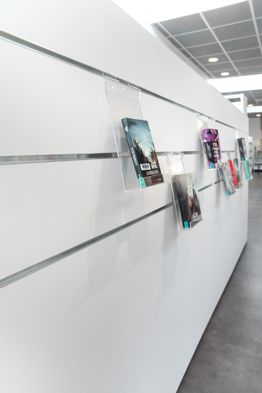 Les écrans sont facilement déplaçables pour créer des solutions d’affichage flexibles pour les livres, multimédia tels que CD / DVD, magazines, brochures, etc.