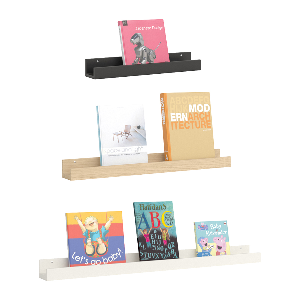 Tablette polyvalente à fixer au mur avec rebord avant.