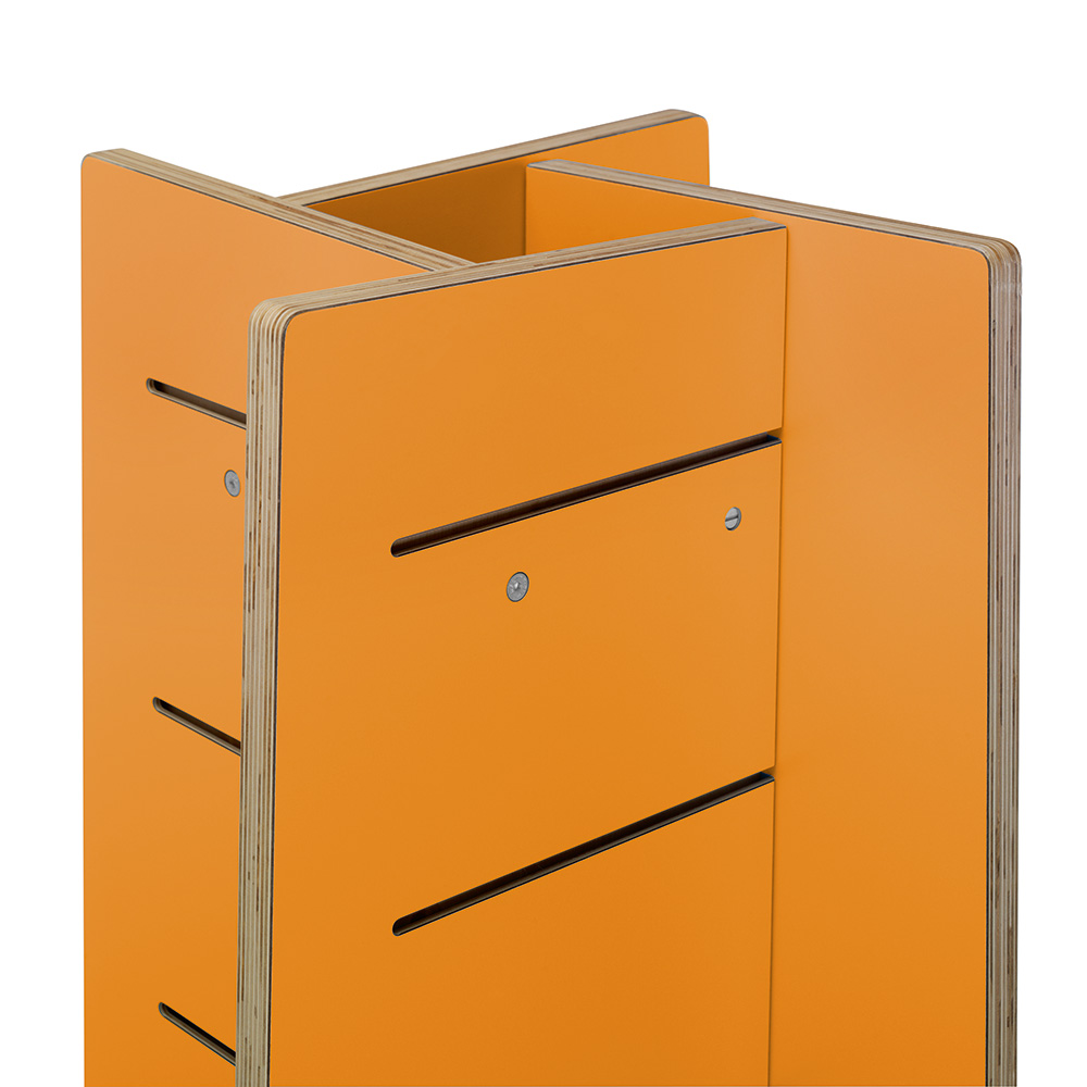Nous utilisons du contreplaqué de bouleau – ici avec les bords visibles – pour créer une surface à la fois durable et robuste. Idéal pour les environnements de bibliothèque les plus exigeants !