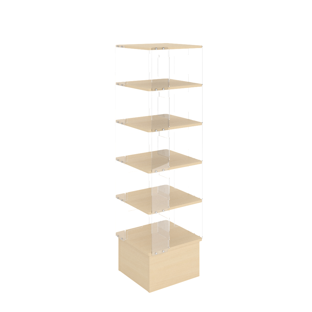 Tour avec cinq étagères divisées chacune en quatre compartiments.