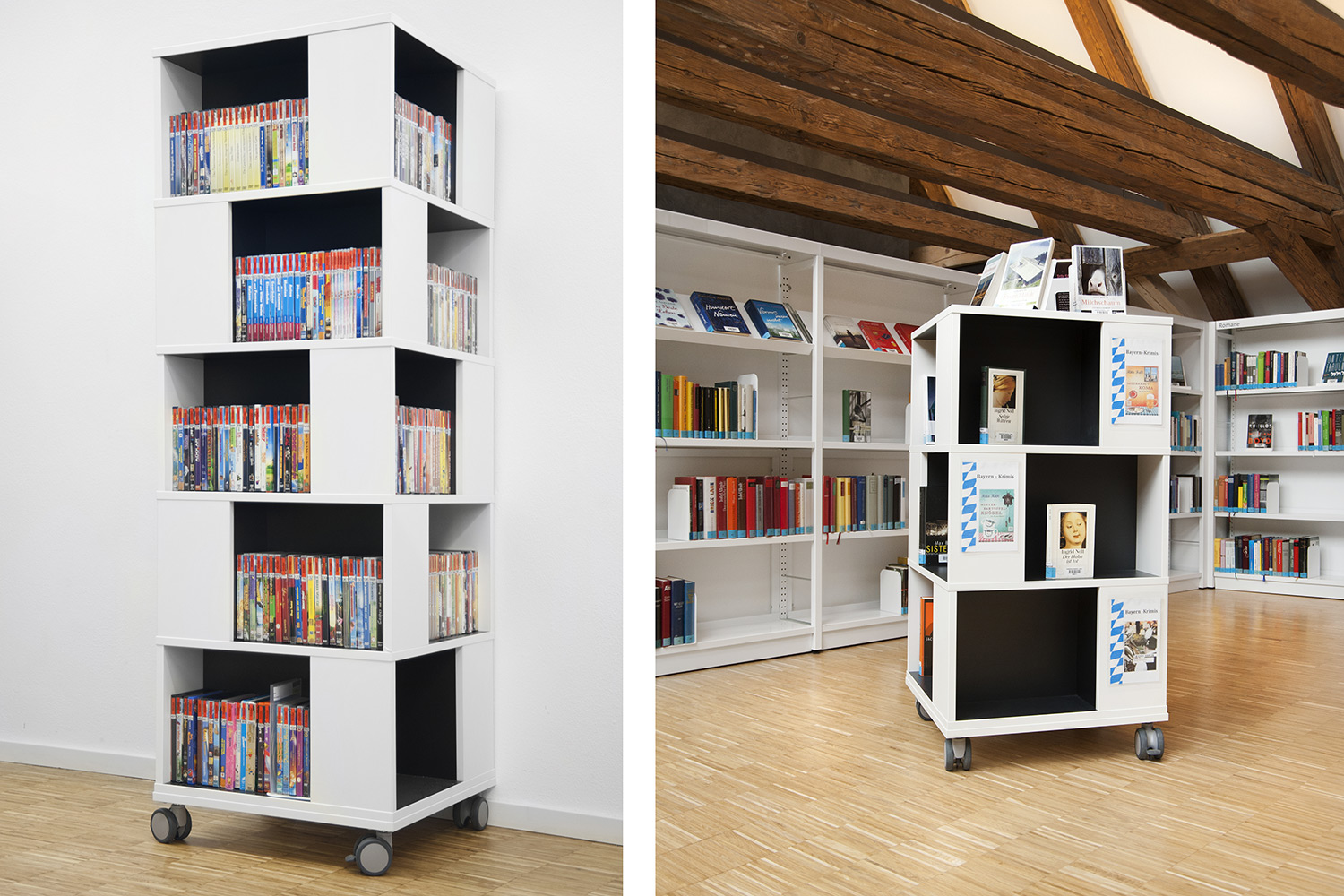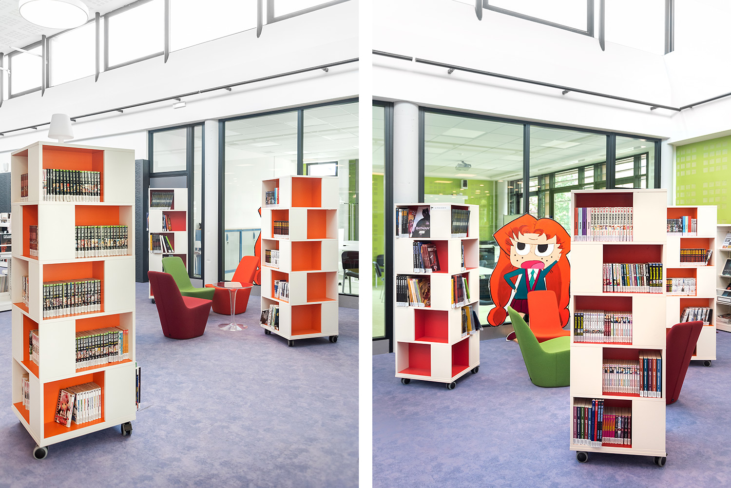 La gamme Labyrinth de tours de livres et étagères à livres est polyvalente et convient à tous les types de bibliothèques. Le mobilier Labyrinth peut être utilisé pour le rangement et la présentation de mangas, romans, livres de poche etc...