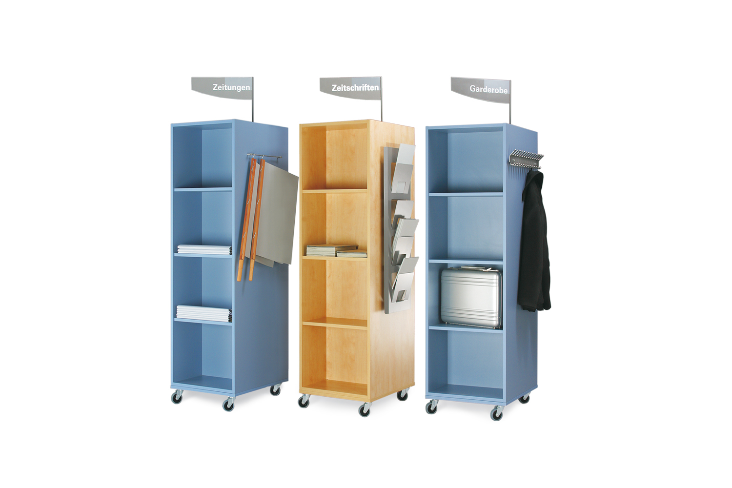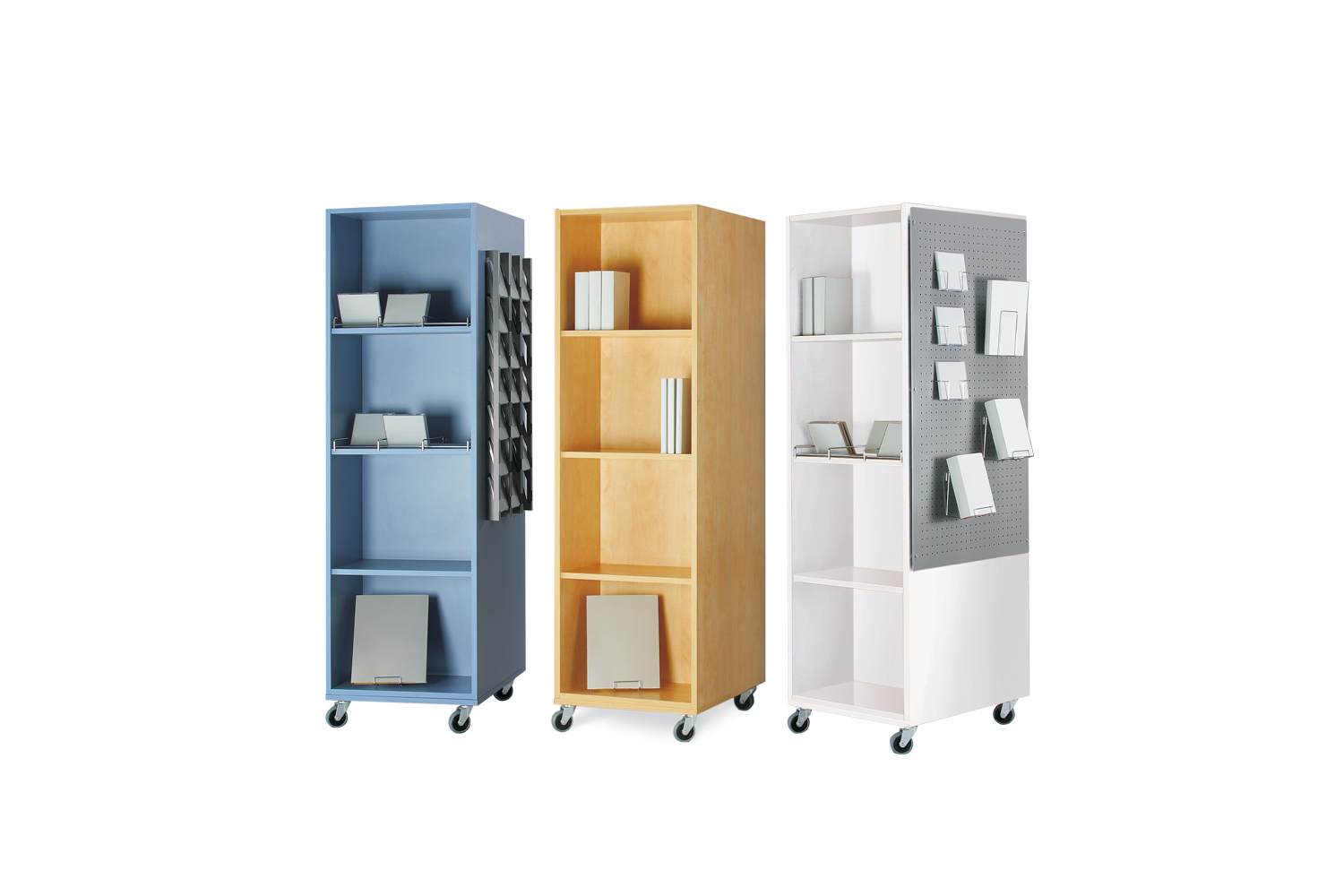 Les tours à thèmes peuvent être utilisées dans tous les espaces de la bibliothèque. Elles sont l’endroit idéal pour mettre en valeur vos dernières acquisitions, pour créer des zones thématiques ou encore exposer des affiches. Les journaux et revues peuvent être rangés et présentés individuellement. Les CD jouissent d’une bonne visibilité et sont aisément accessibles de part et d’autre.